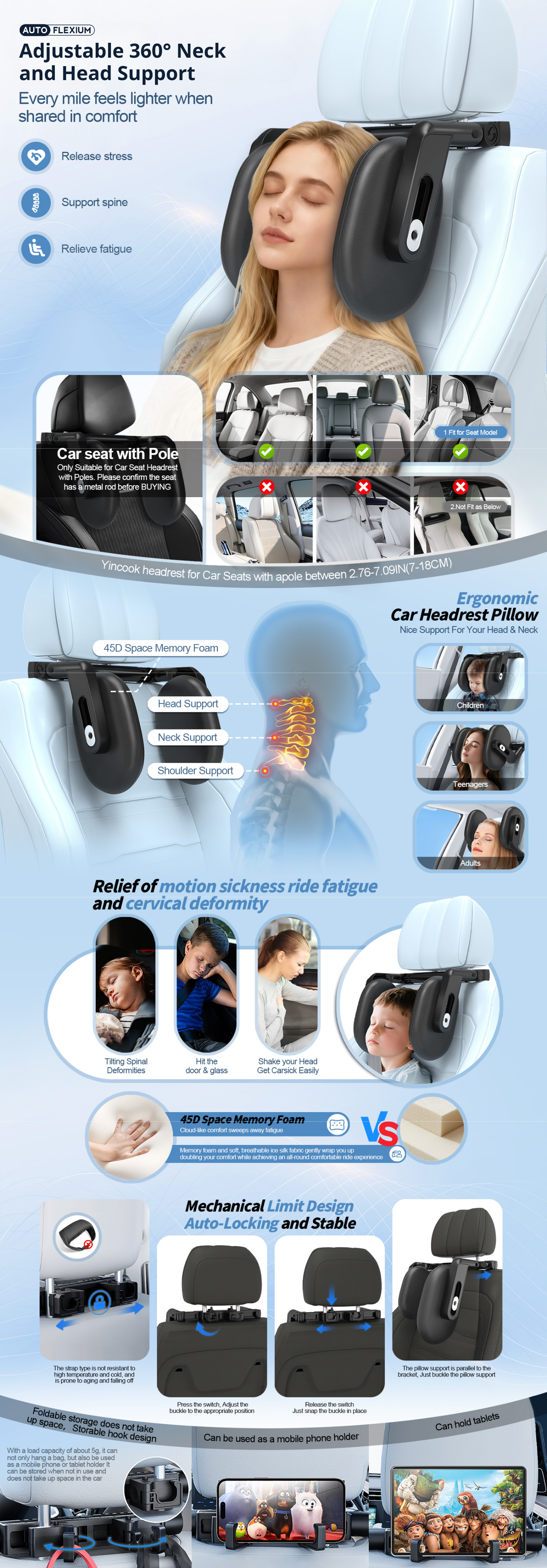 Ergonomic memory foam design reduces neck strain, prevents head movement, and keeps you relaxed on every journey.